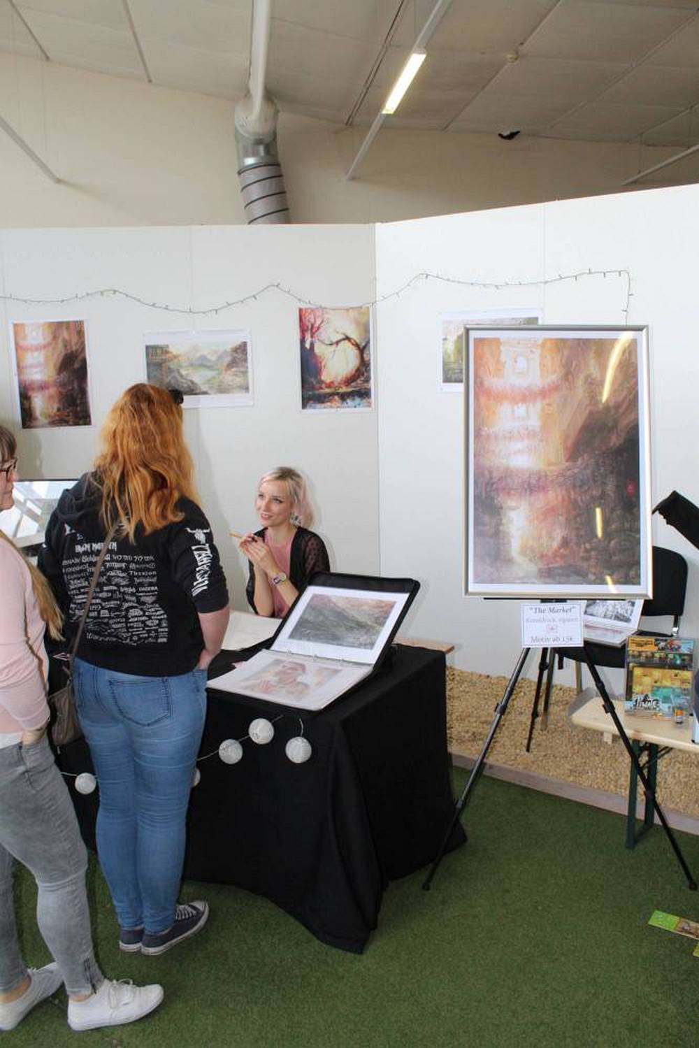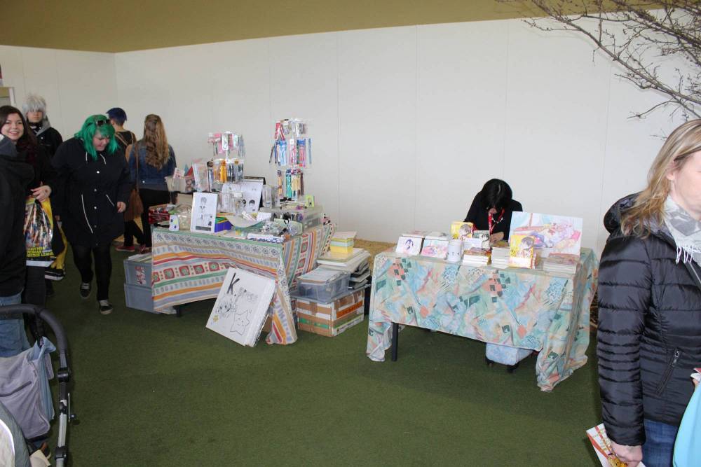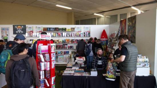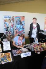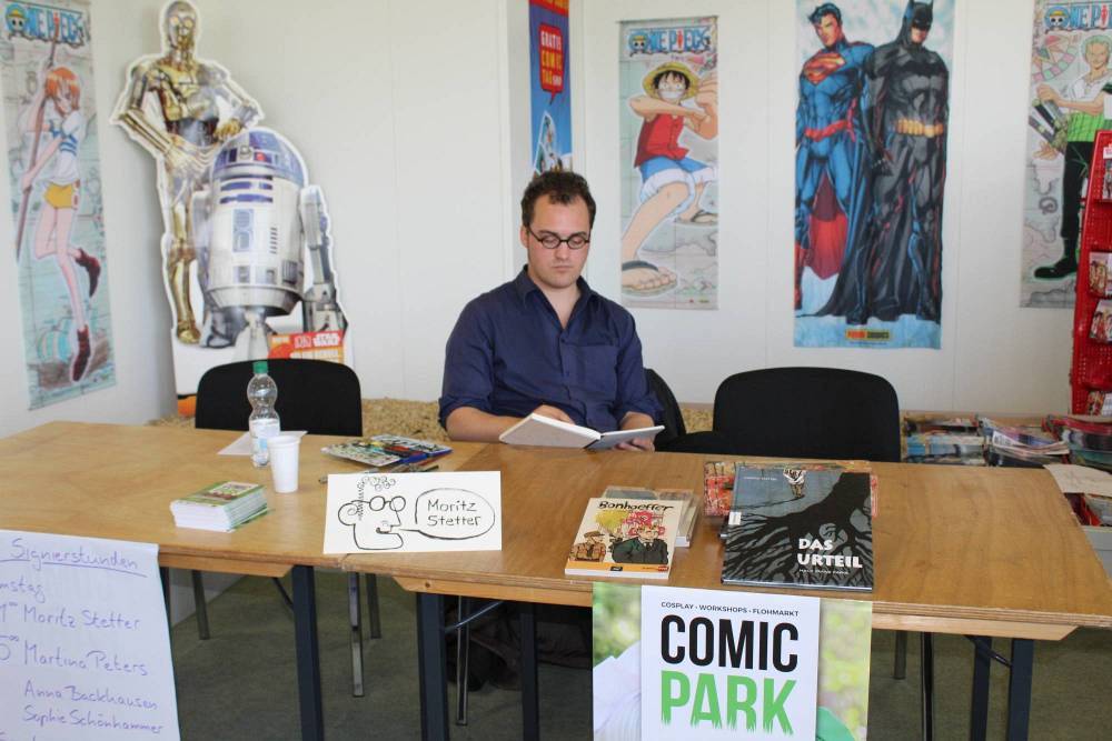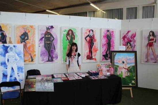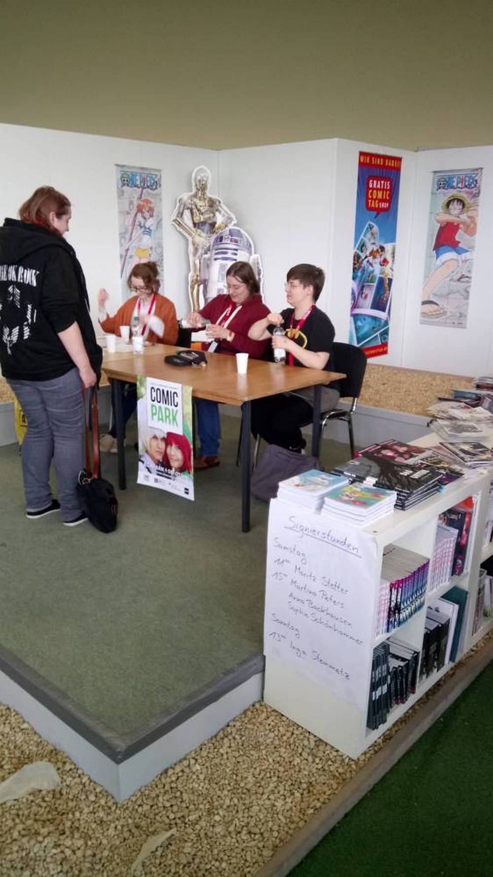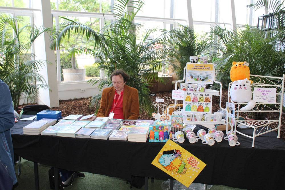Außerdem hatte die Comic und Event GbR auch noch die Manga-ka Martina Peters, Inga Steinmetz, Sophie Schönhammer und Anna Backhaus, sowie den freiberuflichen Comickünstler aus Hamburg Moritz Stetter geladen. Weiterhin zeichnete der aus Bamberg stammende, eigentlich als Spieleentwickler tätige, Bastian „Lapinot“ Baier, der bereits drei Bücher veröffentlicht hat. Leider hatte, der ebenfalls angekündigte, Federico Nardo seine Teilnahme kurzfristig abgesagt. Neben den Comickünstlern, welche alle in Halle 2 zu finden waren, gab es in dieser Halle noch weitere Künstler, die ihre Werke ausstellten und zum Verkauf anboten, wie zum Beispiel Wanda, einen Gamingbereich von Pegasus Spiele und Drant, zwei kleinere Stände von k.press und Van Animation und zwei Stände mit Merchandising aller Art, unter anderem von Komikslandia. Weiteres Merchandising gab es dann noch in Halle 1, wo unter anderem ein Stand von Whats up Jonny zu finden war, mit dem man sich auch sehr gut unterhalten konnte. Aber auch Rune Merchandising, die Manga Mafia und weitere Aussteller boten ihre Waren hier an.