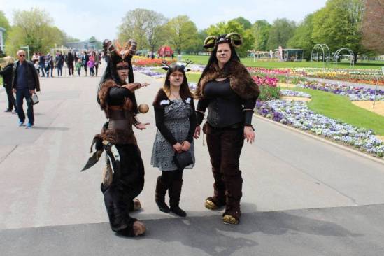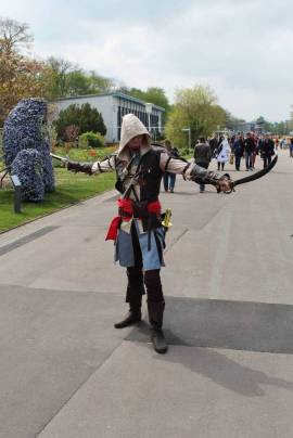 Das Gelände des EGA-Parks ist an sich gesehen schon eine Fahrt nach Erfurt wert. Eine wunderschöne Parkanlage mit Gastronomie und Freizeitaktivitäten lädt ganzjährig viele Besucher ein. Doch diesmal sollte der Park von comicverrückten Enthusiasten, Mangafans und Cosplayern bevölkert sein. Und das hat man bereits lange vor dem Eingang zum Park gespürt und gesehen. Viele Jungs und Mädels, die sich teilweise sehr große Mühe mit ihren Kostümen gemacht haben säumten die Wege zum Park und bevölkerten auch die örtliche S-Bahn. Aus so ziemlich jedem Genre war etwas vertreten. Seien es die bekannten Comics und Manga, Videospiele oder Filme und Serien, alle tummelten sich bei schönstem Wetter im gesamten Park.