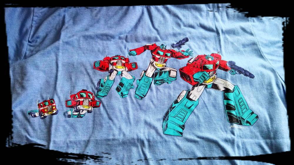 Doch nun möchte ich euch erst einmal zeigen, was alles in der Box drin war. Den Anfang macht ein sehr schön verarbeitetes und im Vintage-Look gestaltetes T-Shirt der Transformers, welches den 80er-Jahre Optimus Prime in seiner Transformation zeigt.