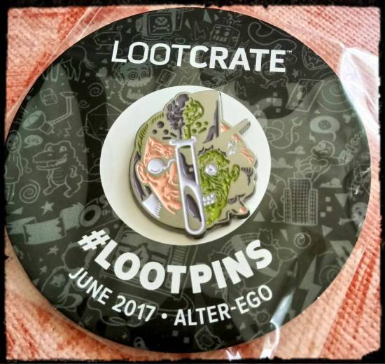 Das nächste gute Stück ist ein Sammelpin mit dem Motiv von Dr. Jekill und Mr. Hyde, welches sehr passend zum Thema der Box ist, das „Alter Ego“ lautet. Der Pin selbst eine einen Durchmesser von ca. 3cm.