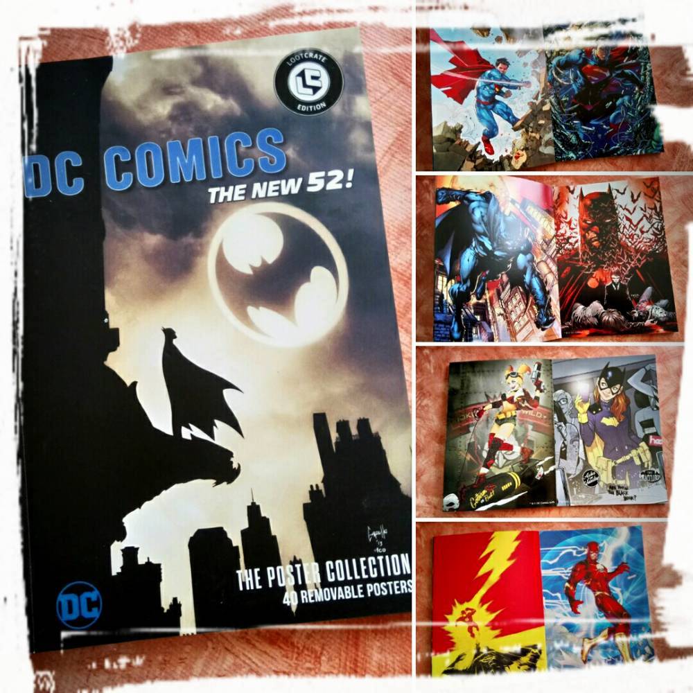 Weiterhin enthalten ist ein kleines Büchlein, das in seinem Inneren 40 einzeln entnehmbare Miniposter enthält. Sämtliche Motive stammen aus der New 52-Ära von DC Comics und vereint verschiedene Künstler, Helden und Schurken. Der einzige Nachteil an diesem wirklich schön gestalteten Büchlein ist, dass die Poster auf Vorder und Rückseite bedruckt sind, wodurch man sich immer zwangsläufig für eines der Motive entscheiden muss.