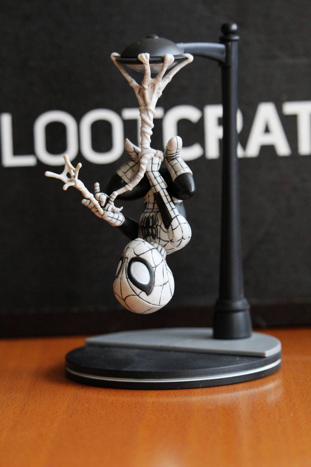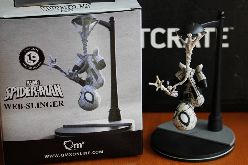 Und hier kommt er nun. Der Grund. Die exklusive und limitierte Spider-Man-Figur. Wobei man mit dieser Aussage vorsichtig sein sollte. Denn exklusiv und limitiert bezieht sich lediglich auf die Farbgebung und Verpackung der Figur. Neben dem Lootcrate-Aufdruck auf der Verpackung ist es vor allem die in Schwarz/Weiß und Graustufen gehaltene Farbgebung, die diese Figur zu etwas Besonderem macht.