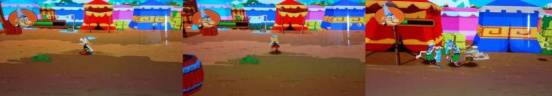 Bei den Minispielen ist das schon etwas einfacher. Da gibt es meist nur eine feste Kamera und dazu benötigt es auch überwiegend nur ein paar wenige Tasten. Beim Römer-Weitwurf muss ein Römer möglichst weit geworfen werden, Überraschung! Dazu braucht es zwei Tasten. Mit der Viereck-Taste wird Schwung genommen und mit der Kreuz-Taste im richtigen Moment losgelassen. Beim Römer-Kegeln gilt es so viele Römer wie möglich mit einem Wurf zu treffen, da sich hier die Punkte multiplizieren. Alles, was man braucht sind die linke und rechte Taste des Steuerkreuz und die Kreuz-Taste zu werfen. Bei Hau-den-Römer sind wiederum alle vier Richtungstasten des Steuerkreuz und alle Aktionstasten gefragt, da hier acht im Boden befindliche Löcher mit Hinkelsteinen malträtiert werden sollen, sobald ein Römer herausschaut. Nur Idefix darf nicht getroffen werden. Für Troubadix hingegen gibt es 5 Bonuspunkte. Doch egal welches der vielen, und jetzt hier nicht genannten Minispiel ihr auch spielt, die Steuerung ist bei allen gleich träge. Und das wiederum führt zu einigen Frustmomenten und lässt mich daran zweifeln, dass dieses Spiel wirklich für eine jüngere Zielgruppe gedacht ist.