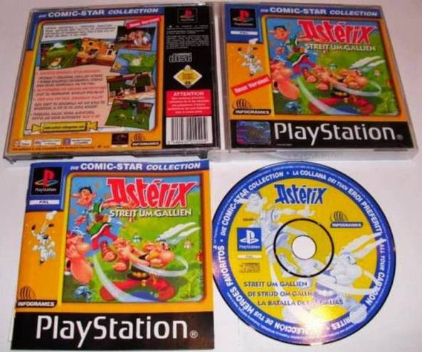 Im Grunde könnte ich fast die Inhaltsangabe zum Gameboy-Spiel „Asterix & Obelix“ herauskramen, denn genaugenommen handelt es sich eigentlich um das gleiche Spiel. Nunja, nur fast. Während die Handlung zwar in beiden Fällen identisch ist, handelt es sich bei der Version für die Playstation, anders als die Gameboy-Fassung, nicht um ein reines Jump&Run-Abenteuer. Stattdessen gibt es ein rundenbasiertes Strategiespiel mit Minispielen und Jump&Run-Passagen. Erschienen ist das Spiel im Jahr 2000 für PC und Playstation und wurde entwickelt von Sourcery Development, was auch gleichzeitig die einzige Arbeit unter diesem Namen darstellt, da das Studio kurz darauf vom Entwickler Warthog übernommen wurde. Außerdem gibt es zwei Versionen. Eine Erstveröffentlichung und eine „Neue Version“, wobei ich aber leider nicht sagen kann, worin die Unterschiede dieser beiden Versionen bestehen. Zum einen bin ich nur im Besitz der neuen Version und zum anderen finde ich keine Infos zu den Beiden im Netz. „Asterix – Streit um Gallien“ gehörte zudem zur Infogrames Spielereihe „Die Comic-Star Collection“ welche neben diesem Spiel noch weitere Lizenzen, wie : „Bugs Bunny auf Zeitreise“, „Die Schlümpfe“ und „Lucky Luke“ beinhaltete und allesamt eher an eine jüngere Zielgruppe gerichtet war.
