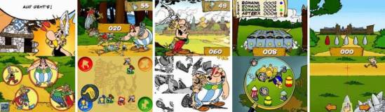 Jagd auf Römer: Hier handelt es sich um eine Abwandlung von Ohrfeigenverteilung. Diesmal jedoch wehren sich die Römer nicht, sondern laufen davon. Per Schiebepad folgt ihr den Römern und haut sie mit der „A“-Taste. Der untere Bildschirm dient wieder als Karte.
