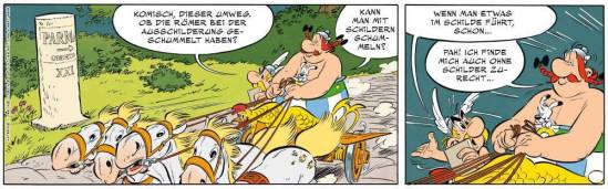 Mit diesem Band setzt sich die Erfolgsgeschichte des kleinen Galliers fort. Seit seinem ersten Auftritt im Pilote Magazin am 29. Oktober 1959 wurden weltweit 370 Millionen Alben verkauft. Aneinandergelegt würden sie zweimal die Erde umrunden und wären aufeinandergestapelt 8.800-mal so hoch, wie der Pariser Eiffelturm. Und das mit einem Gewicht von immerhin 12.900 Tonnen, was in etwa 400 LKWs zu je 35 Tonnen entsprechen würde.