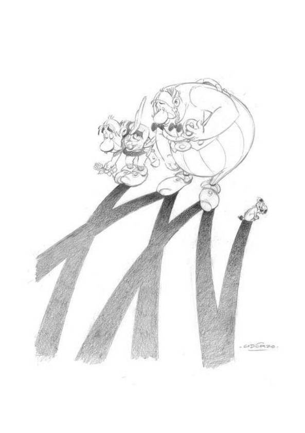 Dieses Bild erschien im November 2002 zum 25. Todestag von Goscinny als Teil einer 8-seitigen Beilage zu einer auf 2500 Stück limitierten Sonderausgabe von „Asterix bei den Belgiern“ deren sämtliche Einnahmen wohltätigen Zwecken gespendet wurden.