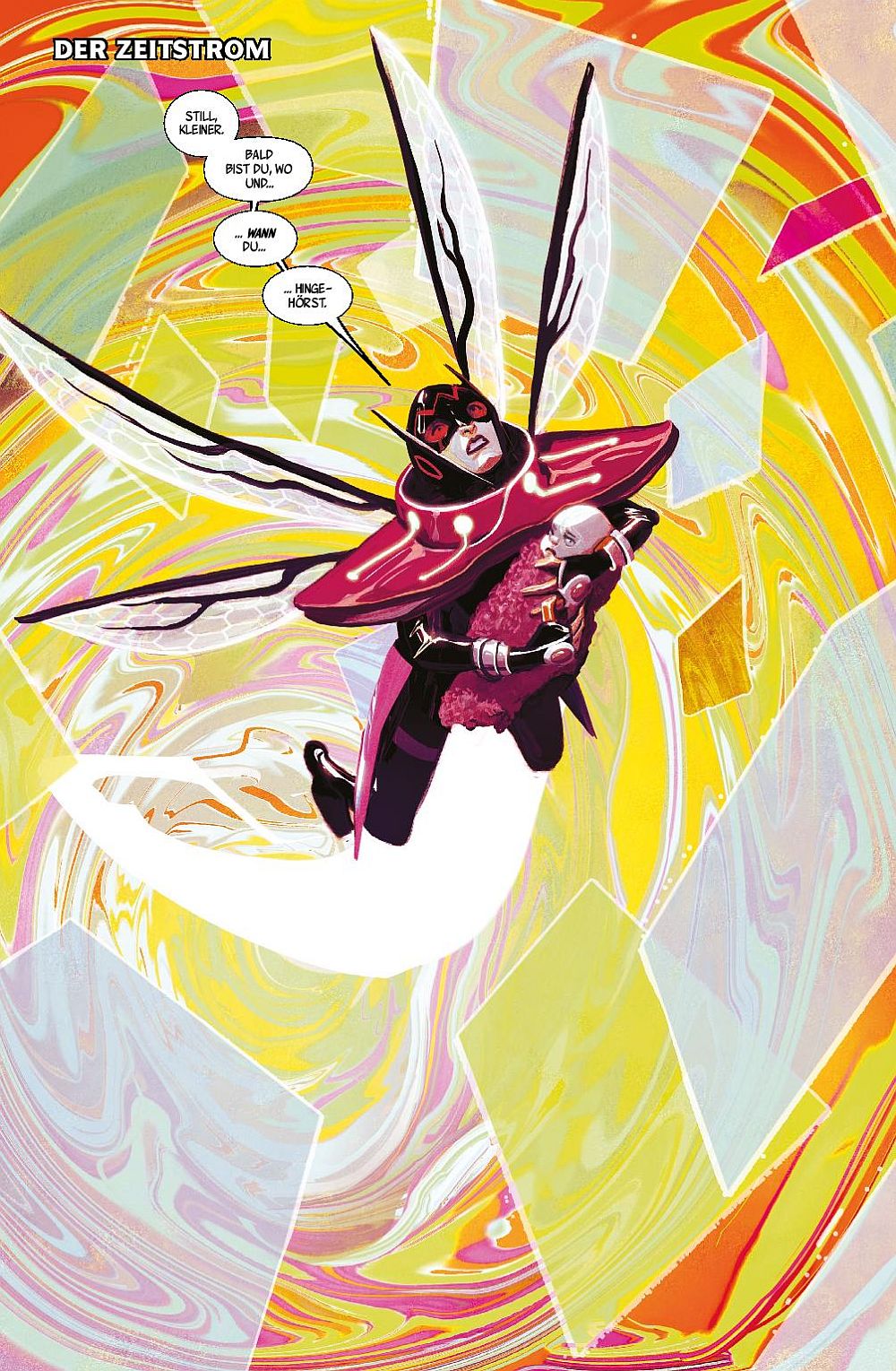 Knallbunt, wie auf einem Drogentrip entfaltet sich der Zeitstrom, in dem sich Wasp und das Kang-Baby aufhalten. Dieser Trip klingt nur langsam ab, denn die knallbunten Farben begleiten den Leser beinahe bis zum Schluss dieser Story rund um das Kang-Baby. Die Avengers haben allerhand im Kampf mit Kang zu tun, ob sie ihn besiegen werden? Wasp und das Kang-Baby landen bei den verbliebenen Priestern von Pama im 26. Jahrhundert. Die Mission der Priester scheint es zu sein, die Geschichte vor Widersprüchen zu schützen. Wenn das Kang-Baby – das lebende Paradoxon – den Flammen der Zeit übergeben wird, dann endet alles „Hier und Jetzt“. Kang würde so niemals geboren werden, alles hätte ein Ende und alles würde gut werden. Wird Wasp das Kang-Baby den Priestern übergeben und es somit in die grünlichen Flammen der Zeit eintauchen? Die Flamme löscht Paradoxa. Ihr das Baby zu übergeben würde Milliarden Menschenleben retten. Wohl möglich gibt es einen guten Grund, warum das Kang-Baby nicht sterben darf?