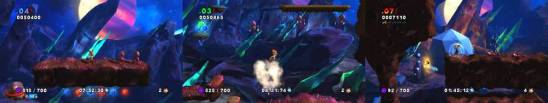 Die Grafik kann auf den ersten und auch zweiten Blick überzeugen. Liebevolle Animationen, detailreiche Hintergründe und auch die Gegner und sammelbaren Extras fügen sich harmonisch in das Gesamtbild ein. Alles läuft flüssig, Leucht- und Blurring-Effekte (wenn auch recht spärlich eingesetzt) ergänzen das Aussehen. Allerdings wiederholen sich die Grafiken insgesamt zu schnell. Es gibt zu wenig optische Abwechslung, auch innerhalb der drei Themenwelten. Alleine nur die Farbpalette zu wechseln, oder besser gesagt zu variieren, reicht für mein Empfinden einfach nicht aus. Die Wald- und Wüstenlandschaft unterscheiden sich sogar noch weniger voneinander. Lediglich das „saftigere“ Grün weist auf die Waldlandschaft hin.