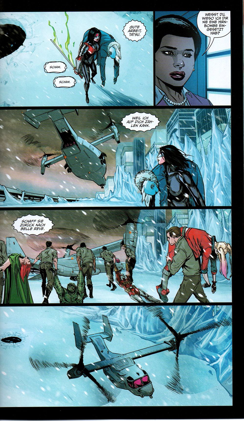 Batman erinnert sich an ein Gespräch mit Amanda Waller in der Strafanstalt Belle Reve. So ungern Batman es auch zugeben mag, doch Caitlin Snow hat ihm den wahren Wert der Suicide Squad bzw. der sogenannten Task Force X gezeigt. Caitlin Snow kämpft schon seit einiger Zeit gegen ihr innerstes Verlangen an, sie ist im Grunde genommen auf der Suche nach einer Heilung. Killer Frost ist eine machtvolle Wärmevampirin, die ihr Verlangen letztendlich nur schwer kontrollieren kann. So kommt es, dass die Suicide Squad den Auftrag von Amanda Waller erhält, Killer Frost, ein aktives Mitglied der Justice League of America, auszuschalten. Das Batman nicht lange auf sich warten lässt, dürfte klar sein, es kommt zwischen Batman und der Suicide Squad zu einem Kampf um Killer Frost. Ob jemand dabei drauf geht? Das kann man in diesem Heft nachlesen 😉