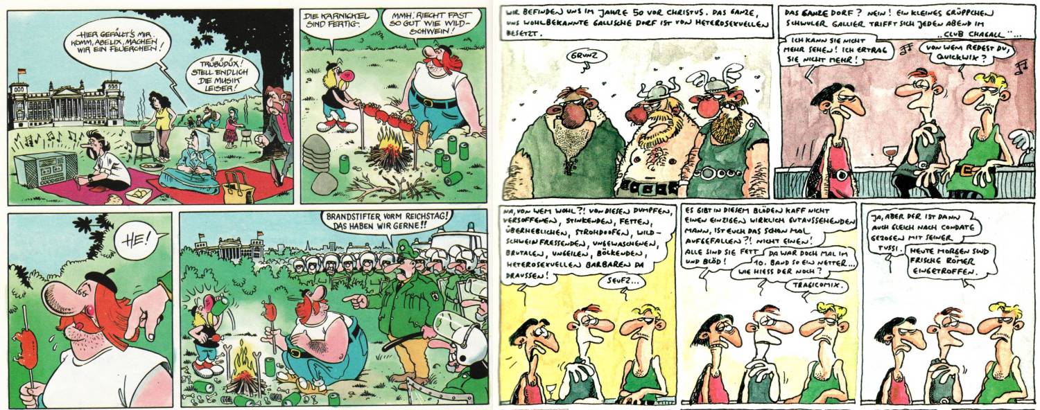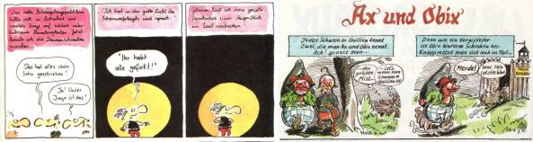 Der erste Prozess fand vor dem Oberlandesgericht München statt. Dieses Urteil fiel zugunsten der Kläger Uderzo/Goscinny aus, wobei das OLG München auch jene Teile abstrafte, die in Frankreich ohne Probleme publiziert wurden. Die nächste Instanz war dann der Bundesgerichtshof, der das Urteil am 11.03.1993 vom OLG München bekräftigte, was erneut einer gewissen Ironie nicht entbehrte. Jedoch stellte der BGH auch klar, dass nicht alle Anklagepunkte rechtens waren. Eine sehr übersichtliche Auflistung findet ihr unter folgendem Link als PDF, wo auch die einzelnen Geschichten, deren Urteil und Begründung Platz finden. Zwar gab es am 07.04.1993 noch ein weiteres Urteil des Landgerichts München, welches viele der Entscheidungen des OLG München und des BGH revidierte, wobei sich das LG München sogar über das OLG München und den BGH lustig machte. So heißt es hier in der Urteilsschrift: