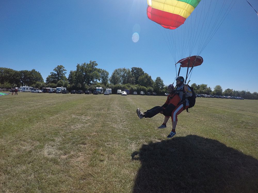 Ich muss aber schon sagen, 60 Sekunden freier Fall sind schnell vorbei und die angenehme Zeit beim Lenken des Fallschirms ebenfalls, denn der Boden kommt doch einfach immer näher. Wir hatten keinen Aufwind, obwohl wir stellenweise uns auch im Kreis gedreht haben. Mein Magen macht so etwas nichts aus, andere Mägen könnten dabei durchaus kribbeln oder es könnte einem schwindelig werden …
