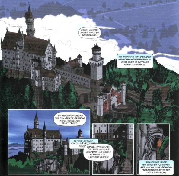 Nachdem es Tracht Man bereits mit dem Saupreussen zu tun bekommen hat und sich auch schon mit dem Nepomuckl herumschlagen musste, ist nun eine mysteriöse Organisation an der Reihe, die dem verstorbenen König Ludwig dem II. huldigen. Und so wie es Chris hier anstellt, scheint diese Organisation schon ein deutlich schwerer Brocken zu sein, als die bisherigen Gegner Tracht Mans. Aber mit dem bisherigen Schurkengenie scheinen sie dennoch nicht zusammenzugehören. Alles ein bisschen geheimnisvoll und was die neue Heldin Bavariana betrifft, gibt es auch noch nicht so viel Neues zu berichten. Wie es aussieht, versucht Chris nun dem bayrischen Helden eine neue Richtung zu geben und dies schafft man am besten mit einem passenden Gegenpart zum Helden und eventuell einem Freund. Natürlich kann ich hier nur mutmaßen, ob Chris absichtlich typische Klischees für seinen Helden nutzt, denn immerhin sind die bisherigen Ausgaben bereits mit einigen Anspielungen der klassischen US-Superhelden gespickt.