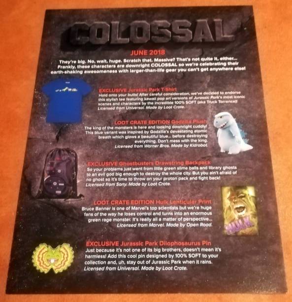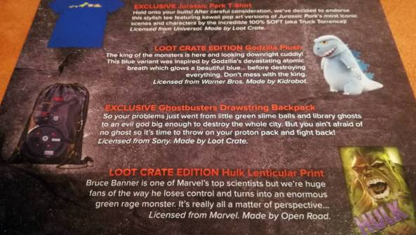 Aber ich komme noch einmal zu den genannten Franchise zurück. Neben Jurassic Park, der dieses Jahr auch sein 25-jähriges Jubiläum feiert, war Godzilla dabei, Marvel und die Ghostbusters. Und ja, da wäre es mir echt schwergefallen „Nein“ zu sagen. Natürlich wusste ich erneut nicht, was von welchem Franchise enthalten sein wird, aber das war mir eigentlich auch egal, da alles sehr gut klang.