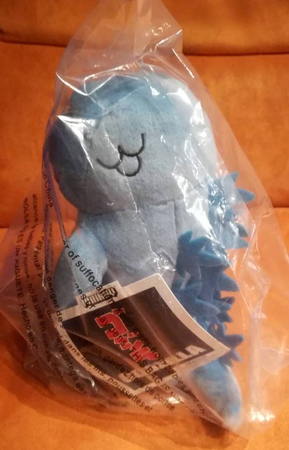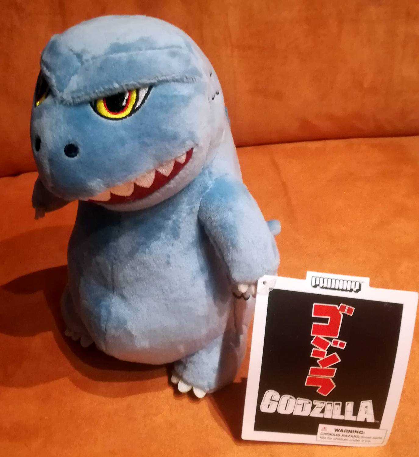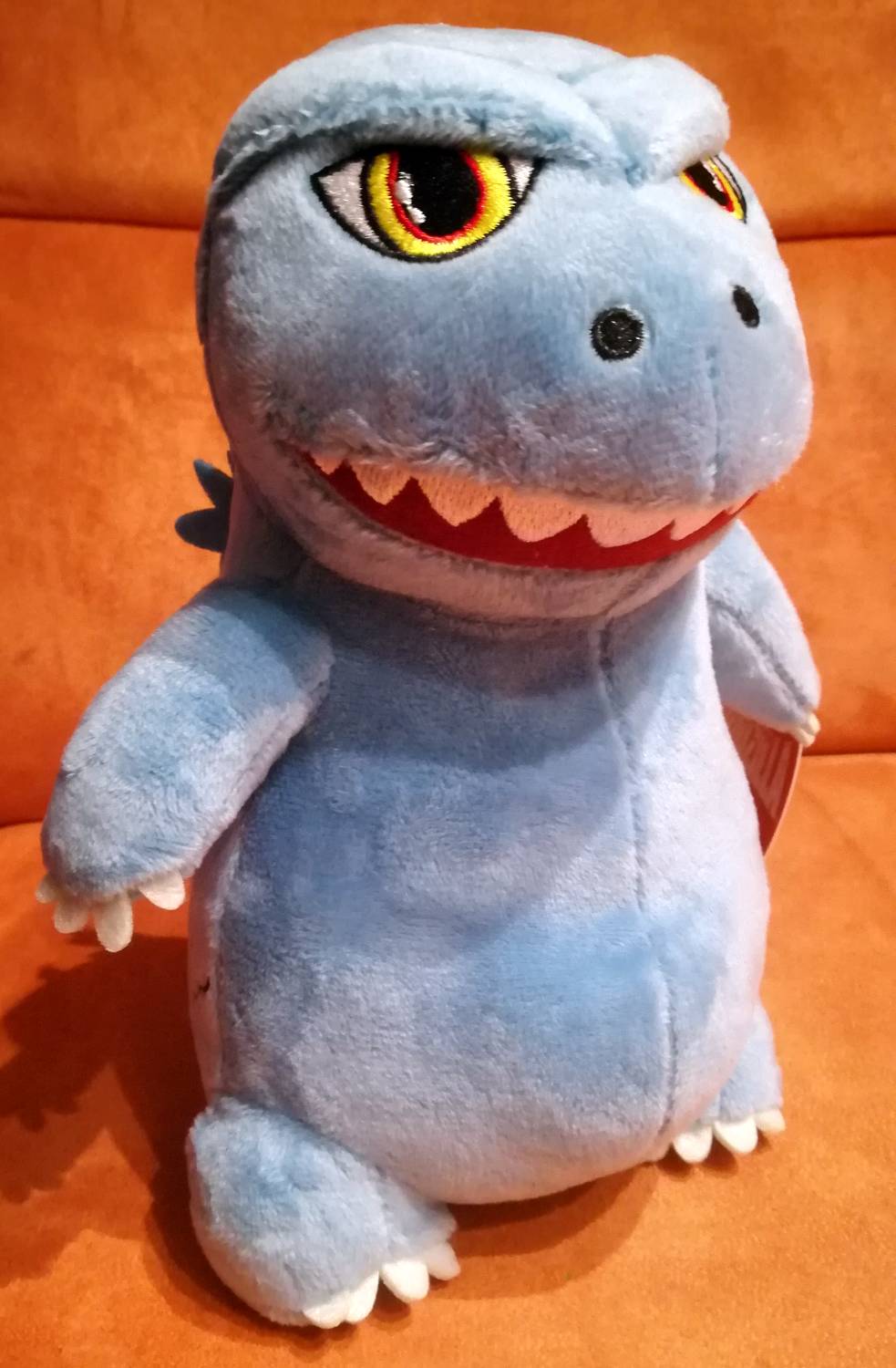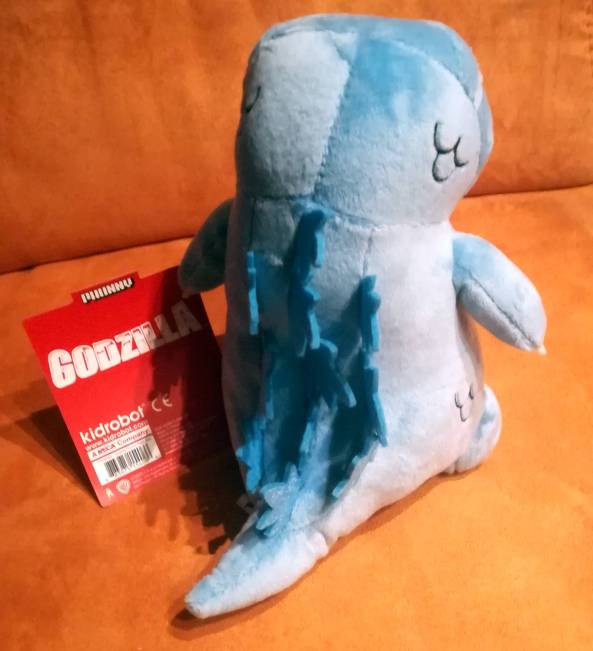 Als nächstes kommt ein Klassiker an die Reihe. Wenn man an große Monster denkt, dann kommt einem irgendwann, wenn nicht sogar als Erstes, Godzilla in den Sinn. In diesem Fall ist es ein 19cm Plüsch-Godzilla in hellem Blau, mit großen gelben Augen, dunkelblauen Stacheln auf dem Rücken. Trotzdem Godzilla ziemlich grimmig schaut, ist es irgendwie niedlich.