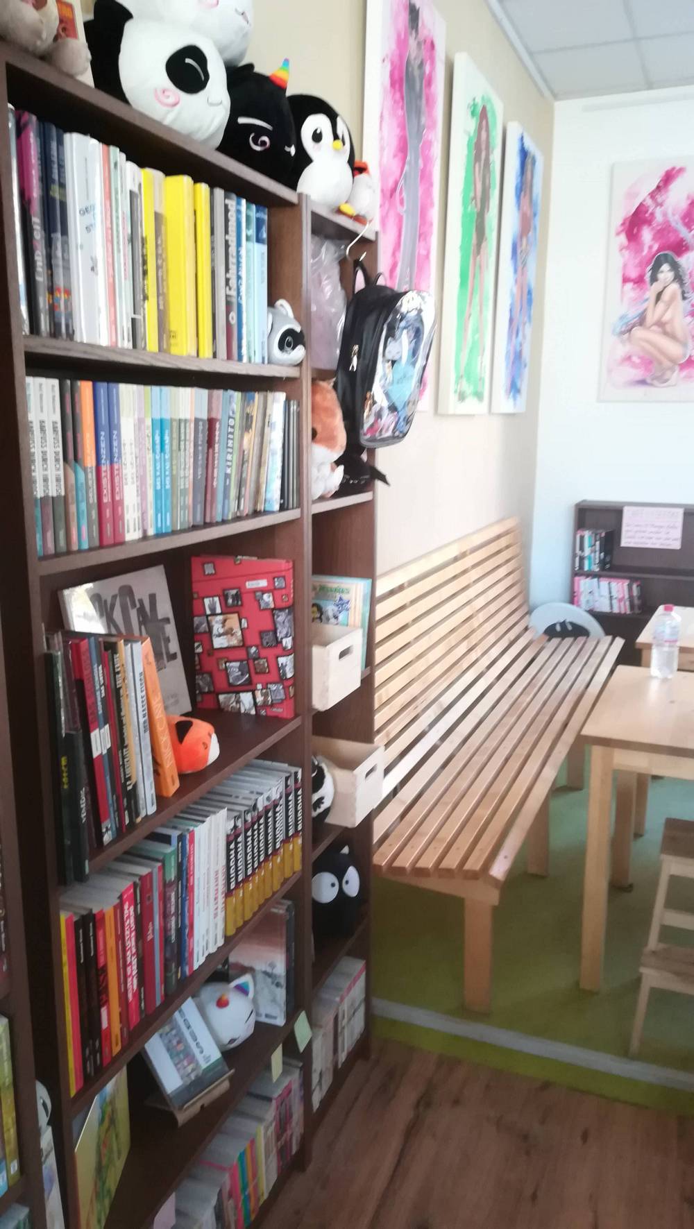 Anders als in üblichen Cafés ist hier jedoch Selbstbedienung. Man geht zur Theke, bestellt, was man möchte, auch aus dem am Eingang stehenden Kühlschrank mit den Kaltgetränken, bezahlt und sucht sich einen Platz. Es gibt keinen Service, wie man es aus anderen Cafés kennt. Ich persönlich finde das sogar ganz stimmig. Die Mischung aus Comicshop und Café fordert nun einmal Kompromisse. Meine Tochter zeigt auf einen kleinen Plüschi, die aussehen wie Disneys Tsum Tsum-Figuren. Nur, dass es sich bei ihrem Objekt der Begierde um ein Einhorn handelt. Viele dieser Plüschis und auch andere Modelle sind im ganzen Café verstreut und tragen so noch ein wenig zur Atmosphäre bei.