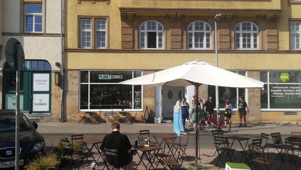 Pünktlich um 10 Uhr hieß es heute Morgen „Ja, okay Leute. Das Café ist dann mal eröffnet.“ Mit diesen etwas flapsigen Worten eröffnete Jan „Ed“ Ettinghausen auf seine typisch charmante Art sein neues Projekt, dass auf den Namen „Planet Comics“ hört. Und natürlich habe ich es mir nicht nehmen lassen, bei diesem Ereignis anwesend zu sein. Und so habe ich mich kurz nach 9 Uhr heute Morgen gemeinsam mit meinen Kindern auf den Weg nach Erfurt gemacht und waren dann kurz vor 10 Uhr am Ort des Geschehens angekommen.
