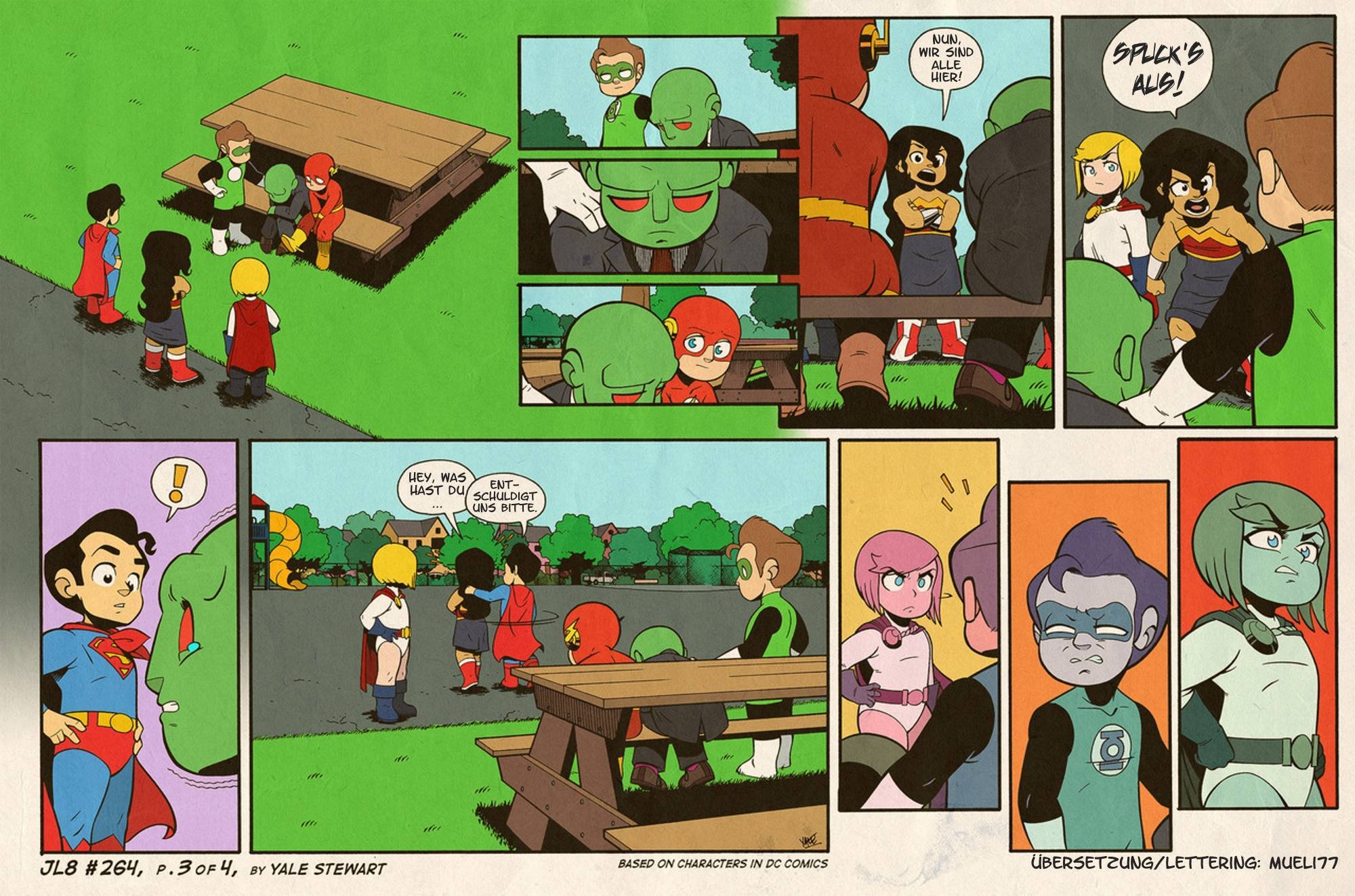 Okt 11 2018 JL8 Episode #264 (3) Da aus J’onn nichts herauszubekommen ist, wird Diana nachdrücklicher … Viel Spaß damit! (für eine größere Ansicht auf das Bild klicken) Characters © DC Comics, Creative Content © Yale Stewart. (Fortsetzung folgt…) JL8 im Web: Tumblr, Facebook, Twitter © 2018 Copyright der Übersetzung by „Mueli77’s Feine Welt“. Jegliche Weiterverwendung ohne ausdrückliche Genehmigung untersagt. „JL8“ erscheint mit freundlicher Genehmigung von Yale Stewart exklusiv in deutscher Fassung auf diesem Blog. Bewerten:Teilen: Klicken, um auf WhatsApp zu teilen (Wird in neuem Fenster geöffnet) WhatsApp Tweet Klicken, um einem Freund einen Link per E-Mail zu senden (Wird in neuem Fenster geöffnet) E-Mail Klicken zum Ausdrucken (Wird in neuem Fenster geöffnet) Drucken Auf Tumblr teilen Klick, um auf Reddit zu teilen (Wird in neuem Fenster geöffnet) Reddit Klicken, um auf Telegram zu teilen (Wird in neuem Fenster geöffnet) Telegram Pocket Zum Teilen auf Mastodon klicken (Wird in neuem Fenster geöffnet) Mastodon Zum Teilen auf Nextdoor hier klicken (Wird in neuem Fenster geöffnet) Nextdoor Gefällt mir Wird geladen … Ähnliche Beiträge
