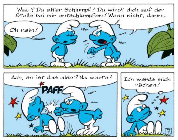 60 Jahre sind natürlich ein Grund zum Feiern, nicht nur für uns Menschen. Die Schlümpfe selbst, sollen ja laut Peyo schon wesentlich älter sein, immerhin wird Papa Schlumpfs Alter mit stolzen 542 Jahren angegeben, und wäre somit mehr als neun Mal so alt, wie die Schlümpfe seit ihrer Erfindung sind. Dennoch, oder gerade deswegen, sind 60 Jahre andauernder Erfolg nicht zu verachten, gerade in unserer schnelllebigen Zeit. Zwar ist die Hauptzeit mit der TV-Serie und regelmäßigen Comicpublikationen in den 80er und frühen 90er Jahren anzusiedeln, aber das das Interesse an den kleinen blauen Kobolden nach wie vor vorhanden ist, und zwar weltweit, zeigen auch die 2011 und 2013 entstandenen Realfilme. Mit dem heutigen Review stelle ich euch das im original als viertes „Die Schlümpfe“-Mini-Recit erschienene Abenteuer vor …