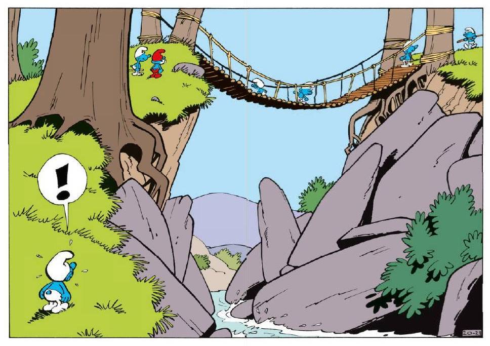 Im letzten Review hatte ich bereits angekündigt, dass ich heute auf die Farbe der Schlümpfe eingehen wollte. Denn Peyo wollte nicht nur, dass die Schlümpfe eben nicht wie kleine Menschen aussehen, sondern sich auch grundsätzlich von den anderen Comicfiguren der frankobelgischen Comicszene abheben. Ähnlich wie bei den Simpsons, bestechen die Schlümpfe besonders durch ihre auffallende Hautfarbe, die übrigens auf Nine Culliford, Peyos Frau zurückgeht. Die Farbe der Schlümpfe fand sich dabei ganz simpel per Ausschlussverfahren. Nine bemerkte, dass sich Grün nicht genug vom Waldhintergrund abheben würde. Rot war ihr zu auffällig und Gelb würde ihr einfach nicht gefallen und somit war nur noch Blau übrig. Eigentlich eine recht einfache und simple Lösung.