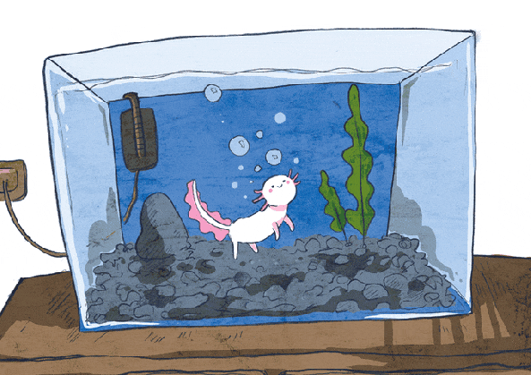 Und nun wie versprochen der Kickstarter-Tipp. Seit Ende Oktober 2018 ist Olivia Viewegs persönliches Herzensprojekt „Kleiner Trottel Axolotl“ auf Kickstarter online. In diesem kleinen aber feinen, ca. 48 Seiten starken und quadratischen Hardcover, wird die Geschichte des kleinen, aber manchmal etwas naiven Axolotl erzählt, dessen bester Freund sein eigenes Spiegelbild ist. Die Kampagne läuft nun noch bis zum 17. November 2018 und natürlich möchte ich gerne, dass sie ein Erfolg wird. Dafür fehlen lediglich noch etwas mehr als 1500 Euro. Deswegen möchte ich euch dieses Projekt nun ausführlich vorstellen.