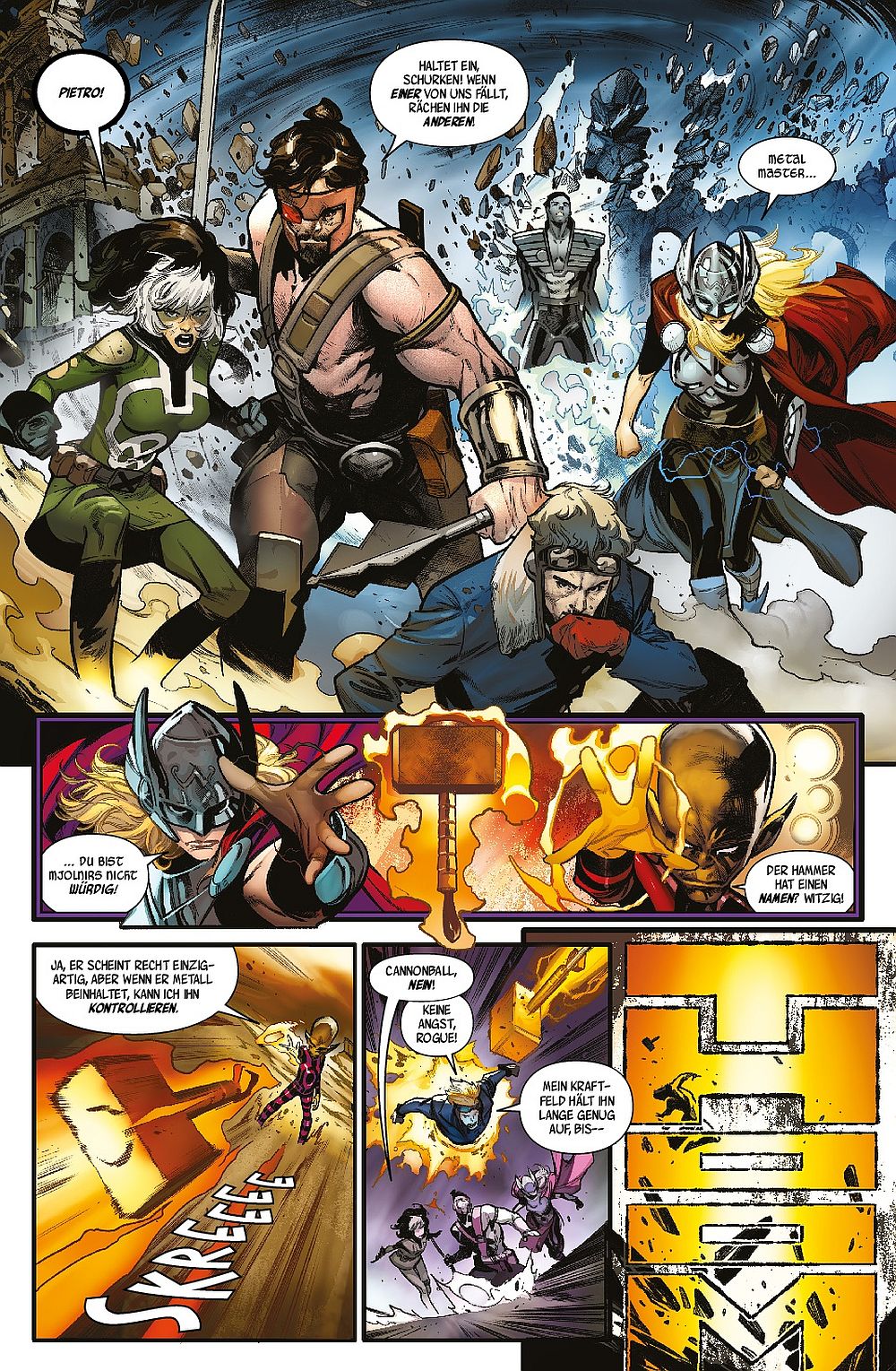 Eins vorweg, auch wenn der Leser auf den ersten Seiten dieses Heftes von der Redaktion vorbereit wird, habe ich mich sehr schwer damit getan nicht den Überblick zu verlieren. Wer sich im Marvel-Kosmos auskennt, für den wird es kein Problem sein, alle Teams einander zuzuordnen. Für mich war das jedoch eine geballte Ladung, jedes Team und ihre Mitglieder einander zuzuordnen. Hinzu kommt, dass in diesem ersten Heft auf 80 Seiten fast nur wuselige Action stattfindet, was die Story nebenbei passieren lässt bzw. während der Action. Wir haben also sehr viele Teams dem Leser näher zubringen und die wuselige Action kombiniert, mit spannender Handlung dem Leser zu servieren. Zeichnerisch ist es ebenfalls eine enorme Aufgabe, die verschiedenen Helden, Teams und Bösewichte auf den Seiten im Gewusel zu zeichnen und zu präsentieren. Ich bin also mit dem ersten Heft etwas überfordert gewesen bzw. ich habe einfach von Action zu Action, von Kampf zu Kampf die Seiten geblättert. Dabei habe ich aber nicht immer richtig wahrgenommen, wer hier wohin gehört, wer gegen welchen Bösewicht kämpft, geschweige denn, wie die Beziehungen einander sich im Marvel-Kosmos gestalten.
