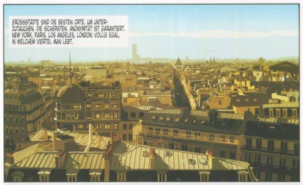 Genau dieses Splittern ist schon seit der ersten Ausgabe auch fast ein Markenzeichen im Artwork von Luc Jacamon, der in vielen Panels seine Zeichnungen förmlich zu zerschneiden scheint. Gerade dann, wenn es psychisch und emotional für die Hauptfigur anstrengend wird, nutzt er diese Technik, die vor allem auf den ganzseitigen Bildern sehr gut Geltung kommt. Aber nicht nur die Bildschnipsel beherrscht Jacamon perfekt. Sein Artwork, eine Mischung aus klassischer Malerei und realen Karikaturen ist sehr erfrischend. Reale Karikaturen? Nun, ich weiß nicht genau, wie ich es nennen soll. Einerseits nutzt Jacamon bei den Figuren markante Elemente, um sie darzustellen, und ähnlich Karikaturen überzeichnet er diese Merkmale ein wenig. Andererseits wirken seine Menschen wiederum sehr realistisch, fast schon so, als könnten sie jederzeit neben einem stehen.