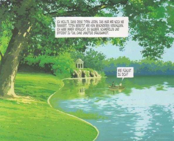 „Der Killer“ ist eine überraschend andere Comicreihe, die zuerst mit Klischees spielt, nur um sie dann komplett über den Haufen zu werfen und sie augenscheinlich mit neuen Klischees zu ersetzen. Aber genau dieses Spiel, plus die auf sich aufbauende Charakterisierung der Hauptfigur, nur um diese, dann Stück für Stück wieder zu demontieren, machen neben dem großartigen Artwork von Luc Jacamon den Reiz dieser Serie aus. Mal schauen, wann ich euch mit Band Fünf beglücken werde.