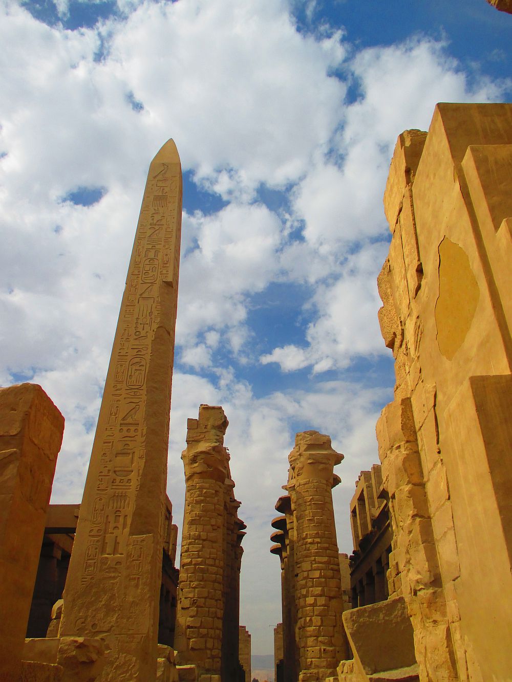 Amun-Re hat sich vom Lokalgott zum Reichsgott erhoben. Die Herrscher des frühen Mittleren Reiches haben mit dem Bau dieses Tempels begonnen, der über Jahrtausende hinweg zum heutigen Tempelkomplex erweitert wurde. Hier konnte die Amun-Priesterschaft den täglichen Tempeldienst ausüben. Es ist im wahrsten Sinne des Wortes ein Tempel für die Götter gewesen. Der Mensch kommt sich in Anbetracht der Größe sehr klein vor. Die Tempelanlage war in mehrere Bezirke aufgeteilt. So gab es neben den vielen Tempeln auch einige Kapellen und auch einen heiligen See. Der große Säulensaal des Hyposyls ist der größte auf der Welt. Nirgendwo auf der Welt gibt es etwas vergleichbares wie in Karnak zu sehen. Mir gefallen besonders gut auch die Obelisken. Karnak hat mich sehr fasziniert, ich kam aus dem Staunen nur schwer heraus.