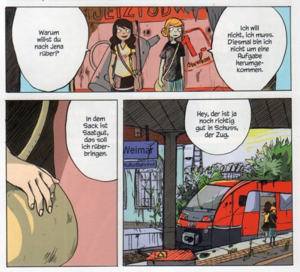 Vor drei Jahren wurde Deutschland und die Welt von einem Zombievirus überrannt. Komischerweise hatten ausgerechnet die beiden thüringischen Provinzstädte Weimar und Jena Unmengen an Elektrozaun, um sich gegen die Zombies zu schützen. Seitdem pendelt ein automatisierter Zug zwischen den beiden Städten. Und hier treffen sich Eva und Vivi, zwei junge Frauen mit einem Ziel aber unterschiedlichen Beweggründen. Während Vivi Saatkartoffeln, ein seltenes und wertvolles Gut, nach Jena bringen soll, will Eva dort eine neue Zeitung gründen, um der Menschheit ein Stück Vernetzung und Information zurückzubringen. Doch alles ändert sich, als der Zug auf halber Strecke zum Stillstand kommt und die beiden ihren weiteren Weg zu Fuss, durch die Horden der Zombies bestreiten müssen …