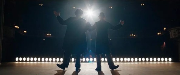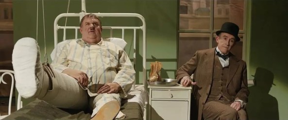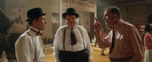 Wie bereits in der Einleitung erwähnt konzentriert sich der Film vorrangig auf die Jahre ihrer Tour in England. Dies verwundert auch dahingehend nicht, weil die Basis des Films das Buch „Laurel & Hardy: The British Tours“ von A.J. Marriot ist, welches Drehbuchautor Jeff Pope für die Filmbiografie unter der Regie von Jon S. Baird umgesetzt hat. Für Baird ist es nach „Cass – Legend of a Hooligan“ aus dem Jahr 2008 und „Drecksau“ von 2013 der dritte Film, für den er Regie führte. Dabei kann der Unterschied kaum größer ausfallen. Waren die ersten beiden Filme noch Sozialdramen hat er sich mit der Biografie von Laurel und Hardy auf einen neuen, ihm eher unbekannten Sektor gewagt. Doch nach eigener Aussage fiel ihm das gar nicht so schwer, da er bereits seit frühester Kindheit ein Fan der beiden Komiker ist. Das Ergebnis ist ein mitreißender und rührender Film, der sich mehr mit der Freundschaft von Stan und Olli befasst, als mit ihrem künstlerischen Wirken. Auch setzt der Film weitaus mehr auf die zwischenmenschlichen Beziehung der beiden Freunde, als die bloße und polemische Darstellung der letzten Lebensjahre. So endet der Film mit dem Abschluss der Tour und erwähnt den Tod der beiden nur in einem Infotext, statt dies noch höchst melodramatisch darzustellen, was mir persönlich überhaupt nicht gefallen hätte. Aber hier merkt man auch den Unterschied zwischen einer britischen Produktion und dem was Amerika daraus gemacht hätte. Erfahrungsgemäß setzen die amerikanischen Produktionen eben genau auf diese Melodramatik, das große Spiel mit den meist „falschen“ Gefühlen, während andere Produktionsländer oftmals subtiler vorgehen. Ausnahmen bestätigen im Übrigen diese Regel nicht.