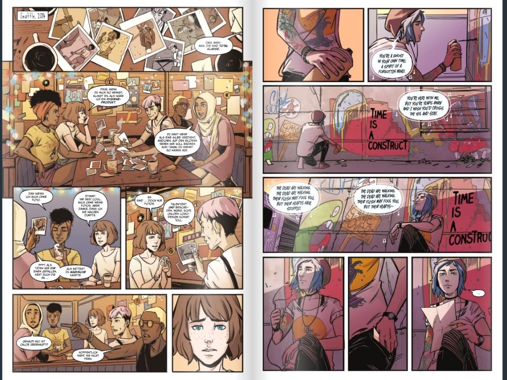 Es macht definitiv Sinn, erst den grandiosen ersten Teil gespielt zu haben, ehe man sich mit dem Comic befasst. Der Band setzt nahtlos an eines der Enden des ersten Teils an. Den zweiten Teil sollte man natürlich auch gezockt haben, ist aber für das Verständnis der Spielmechanik und dem Gesamtgeschehen in dem Comic nicht ganz so wichtig. Max und Chloe haben neue Freunde in einer neuen Stadt gefunden. Ein Jahr nach der Katastrophe in Arcadia Bay, kehren sie jedoch gemeinsam zurück an den Ort, wo alles begonnen hat.