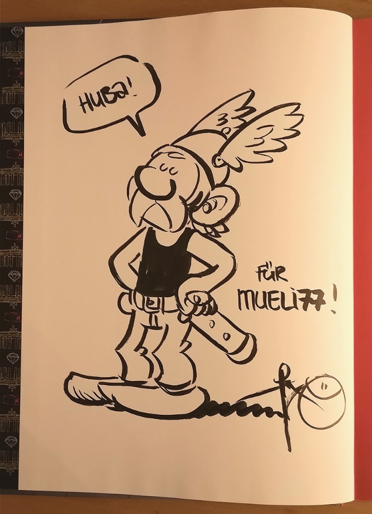 „Ich bin zwar in der DDR aufgewachsen und mein Zugang zu westlichen Comics war mitunter ziemlich eingeschränkt, aber dank einiger Familienmitglieder aus Westdeutschland, hatten wir bereits vor der Wende alle bis dahin erschienenen Asterix-Alben im Bücherregal stehen. Die ganze Familie war verrückt danach!In der Schule hab‘ ich dann mal heimlich unter der Bank „Asterix bei den Schweizern“ gelesen. Plötzlich stand meine Mathematiklehrerin Frau Fischer neben mir und schimpfte: „In DIESER Schule lesen wir keine Westcomics!“ Zack! – hatte sie mir mein kostbares Asterix-Album weggenommen! Das war vielleicht schlimm! Einige Tage später gab sie es mir wieder zurück. „Hier ist Dein Buch! … Ach … und die Szene mit dem Fondue hat mir am besten gefallen.“. Oh – übrigens: Mein Sohn wurde dieses Jahr geboren! Wir haben ihn Albert genannt. Benannt nach … genau!“
