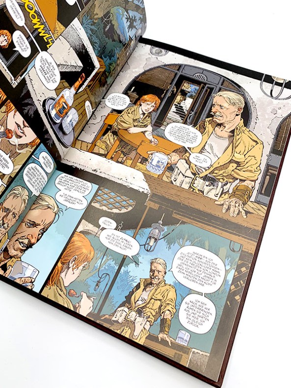 Die immense Mühe, die Rodríguez in seine Arbeiten gesteckt hat, werden im zweiten Teil des 108 Seiten starken Hardcovers mit teilspotlackiertem Cover sichtbar. Hier findet sich die gesamte Graphic Novel noch einmal in ihrer Rohform, als blaue Bleistiftzeichnungen ohne Text. Für manch einen mag das wirken, als wollte man den band mit mehr Umfang einfach nur teurer machen, aber wenn ich ehrlich bin haben mich die Bleistiftzeichnungen dazu verleitet, sie mit den endgültigen Arbeiten zu vergleichen, wodurch mir noch einige Änderungen aufgefallen sind, abgesehen davon, dass die Bleistiftoriginale mit noch einmal wesentlich mehr Details aufwarten können. Zudem wurde der Band noch mit einem sechsseitigen Gespräch zwischen Adams und Rodríguez ausgestattet, der einen informativen Blick in die Entstehung ermöglicht.