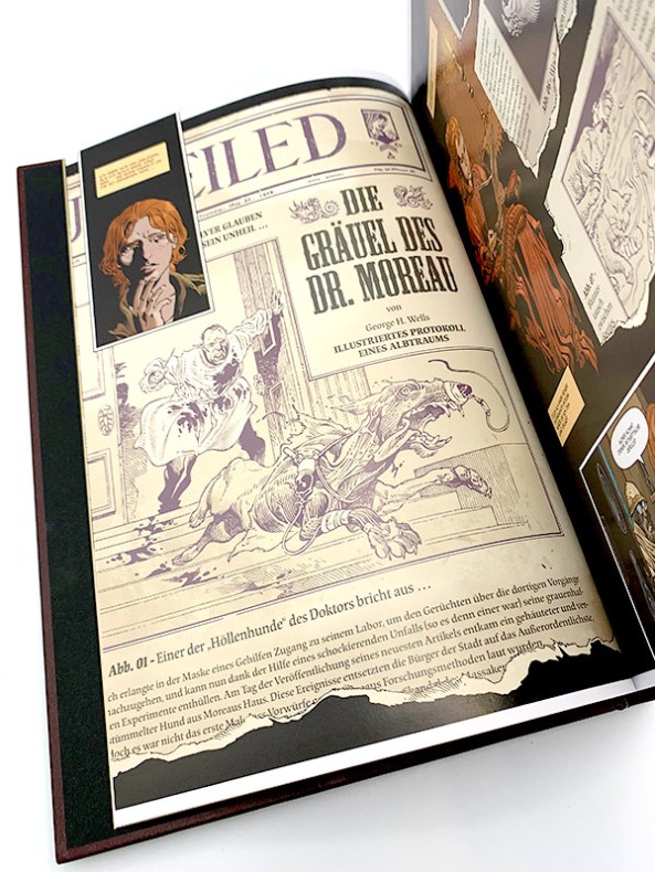 Ebenso lohnt es sich Zeit zu nehmen, für die wundervollen und sehr detaillierten Zeichnungen von „Locke & Key“-Starzeichner Gabriel Rodríguez. Durch kleinste Feinheiten verliert man sich immer wieder in deren Schönheit, entdeckt eigentlich „unwichtige“ Nebensächlichkeiten im Hintergrund oder ist begeistert von der Anatomie der Tiermenschen, die meist faszinierend und weniger grotesk wirken. Zwar ist Wells Roman eine Fantasy-Horror-Geschichte, die auch in der Comicadaption einiges an Greuel zu bieten hat, aber hier findet die Furcht, trotz aller Details im nicht sichtbaren Spektrum statt. Besonders faszinierend ist die Erzählweise Rodríguez‘, der die ganze Geschichte in Doppelseiten erzählt, was laut seiner eigenen Aussage eine unglaubliche Herausforderung darstellte.