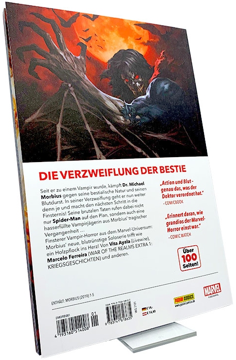 Trotz dieser kleinen Mankos bleibt der erste Band von Morbius‘ neuer Serie durchaus lesenswert. Vita Ayala hat wunderbare Arbeit an Michael Morbius neuem „Debüt“ geleistet und der Figur neue teils traurige Facetten verpasst. Zum Glück nimmt die erwähnte Gewaltdarstellung keine Überhand, sodass es glücklicherweise auch bekannte, fast schon klassisch anmutende Panels gibt, die einem das Gefühl einer mitunter 50 Jahre alten Horrorgeschichte vermittelt. Dennoch sollte der Band in meinen Augen eher von reiferen Lesern konsumiert werden. Die werden jedoch ihre Freude daran haben, sofern sie sich nicht des Mysteriums Morbius entziehen können. Ich für meinen Teil habe bereits „Blut geleckt“!