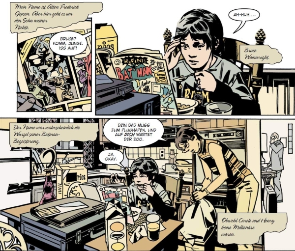 Kurt Busiek hat sich den Mythos Batman genommen und eine neue Geschichte verfasst, die grundsätzlich ohne den klassischen Batman auskommt, und dennoch alles beinhaltet, was man von einer Batman-Story erwartet. Ein Helfer und Vertrauter der Familie mit dem Namen Alfred, ein Polizist namens Gordon und ein „Robin“ der Hilfe benötigt, weil seine Eltern ebenfalls ermordet wurden. Das Ergebnis ist eine faszinierende Story ohne Batman, die aber kaum klassischer sein könnte. Eine andere Sicht auf den Mythos des Mitternachtsdetektivs, eine mögliche Erzählung, wie sie vielleicht sogar wirklich passieren könnte. Die trotz alles mysteriösen Elemente realer ist, als viele frühere Batman-Erzählungen.