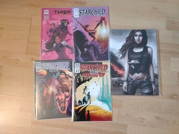 - Die erste Ausgabe von Thief Sister konnte mich überzeugen, ich bin gespannt, wie es mit der zweiten Ausgabe weitergehen wird. Die Seneca Akte (Band Nr. 2) von Michael Feldmann, ist mit Sicherheit große Comic Kunst. Der erste Band hat mich absolut überzeugen können. Auf die Fortführung freue ich mich bereits sehr. Was mich mit den Starchild Heften erwarten wird, dass weiß ich noch nicht. Der Preis und das Angebot waren heiß, also habe ich einfach mal zugeschlagen.