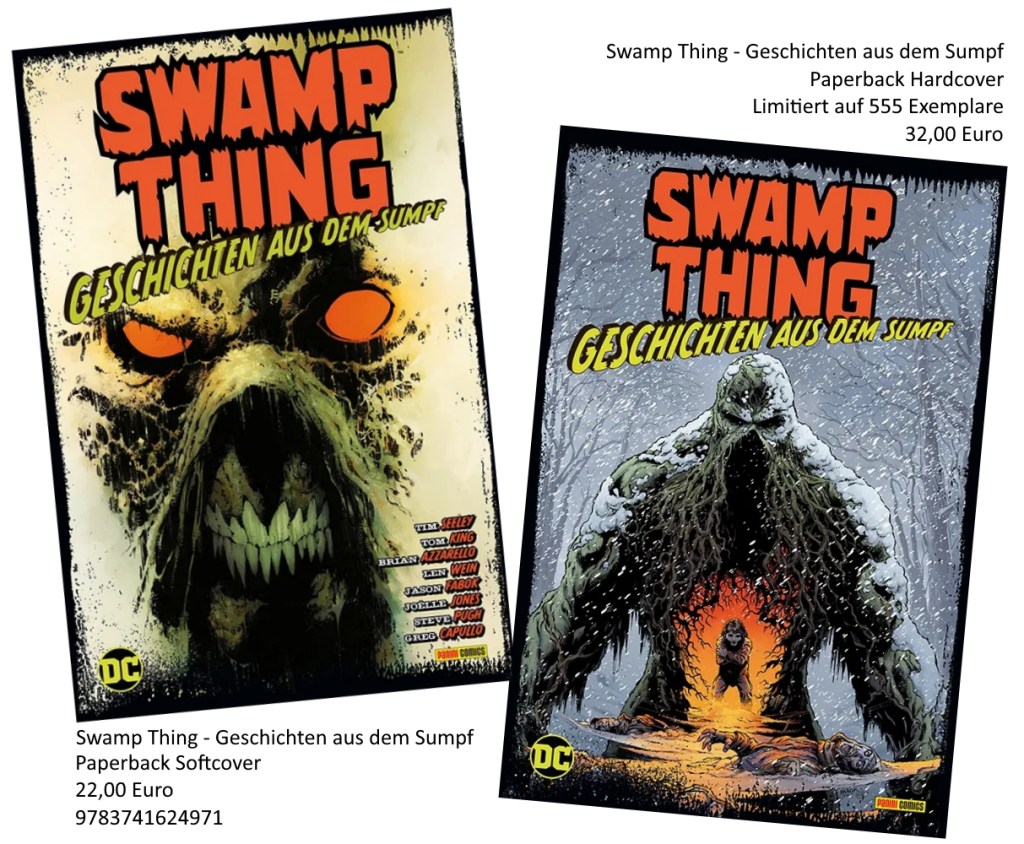 Swamp Thing hat bei Carlsen Comics und Panini bereits einige deutschsprachige Veröffentlichung erfahren. Sei es die erste „klassische“ Serie, ursprünglich von Bernie Wrightson und Len Wein verfasst, die zweite „Saga of the Swamp Thing“-Reihe, an der sich Comicmeister Alan Moore ausgetobt hat, der 52-Neustart unter der Federführung von Scott Snyder, welche dann von Charles Soule grandios weitergeführt wurde, oder die ersten 6 Ausgaben des 2016er Neustarts, an dem Len Wein gemeinsam mit Batman-Ikone Kelley Jones arbeitete. Leider fand diese Serie ein ebenso tragisches Ende, wie die Entstehung Swamp Things. Len Wein starb während der Arbeiten an Ausgabe 7 und so wurde diese bisher nirgends veröffentlicht.