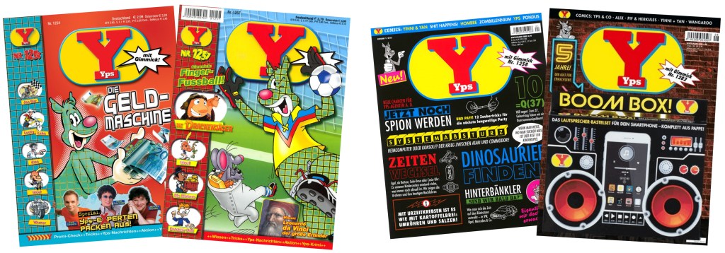 Doch bei Egmont hielt man an der Idee und dem Potenzial von Yps fest, was im Oktober 2012 dazu führte, Yps als Lifestyle-Magazin für Erwachsene im erweiterten Umfang von 100 Seiten mit Hochglanzpapier und im Format von 28,5 x 23 cm wiederzubeleben. Damit dem Erfolg auch hier nichts im Weg stand, konzentrierte man sich auf die früheren Erfolgsformeln. Das Gimmich und die allseits bekannten Comics. Und so wurden vorrangig viele Originalcomics nachgedruckt und das ganze mit neuen Comics ergänzt. Zudem gab es viele Infos zu Yps, redaktionelle Beiträge über verschiedene Themen von den 60er bis ins neue Jahrtausend, verrückte Erfindungen und vieles mehr. Der zweite Relaunch kann dabei durchaus als Erfolg angesehen werden. Immerhin lief diese von Oktober 2012 mit der Nummer 1258 (einen Artikel zu dieser Ausgabe könnt ihr hier auf dem Blog unter folgendem Link nachlesen) bis zur Ausgabe 1282 vom Mai 2017, die gleichzeitig die Jubiläumsausgabe „5 Jahre Yps für Erwachsene“ war. Und dies führt uns zu dem Punkt, an dem wir heute stehen …