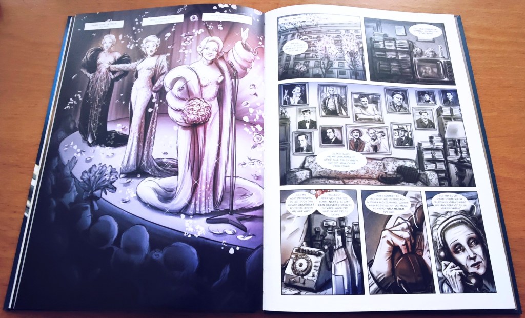 Über zwei Jahre hat es gedauert, bis die Fortsetzung endlich fertig wurde. Den Grund dafür liefert Zeichnerin Flavia Scuderi im abschließenden Interview selbst. Doch das werde ich erst später „enthüllen“. Vorrangig geht es darum, ob Band 2 die Qualität des ersten halten kann und wie sich Autor Alessandro Ferrari mit den späteren Jahren, in denen „Die Dietrich“ im Grunde „nur“ eine normale Frau, Mutter und Oma war, befasst …