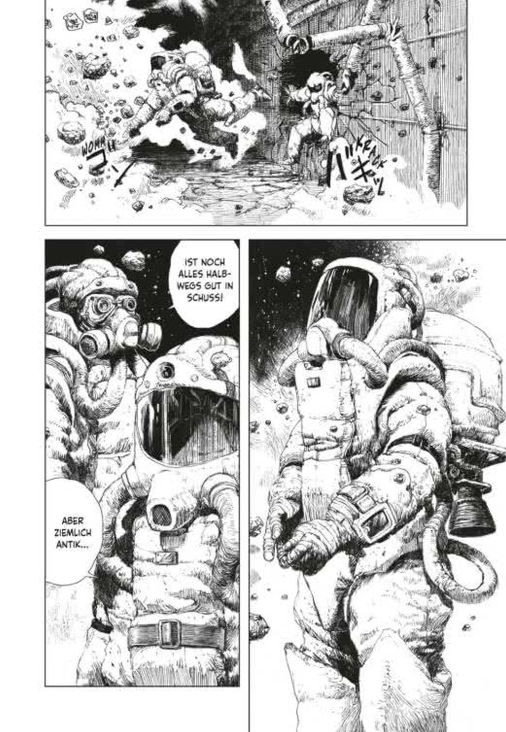 Im ersten Band geht es um die Entdeckung des Raumschiffs durch einige Plünderer.