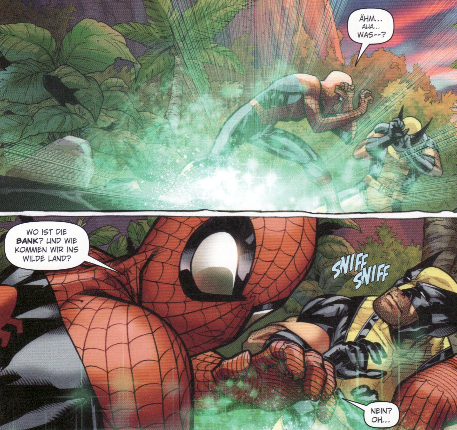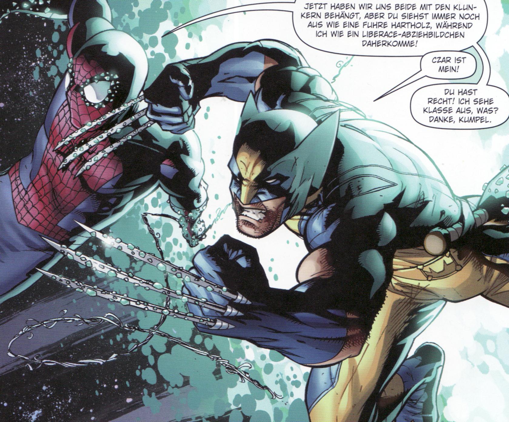 Der ewig plappernde Spider-Man und der immer mürrische Wolverine sind schon immer wie eine Art altes Ehepaar. Dies macht auch der vorliegende Band auf sehr humorvolle Art und Weise deutlich. Denn egal, in welcher Zeit sich die beiden befinden, sie zicken und schnauzen sich immer an. Das ist, obwohl es sich andauernd wiederholt, dennoch jedes Mal sehr unterhaltsam. Und trotzdem können sie auch nicht ohne den Anderen. Besonders als sich ihre „Freundschaft“ gegen Ende dieser Ausgabe auf sehr emotionale Weise weiterentwickelt und ein Band schafft, das auch gerne in die aktuellen Geschehnisse mit aufgenommen werden könnte.