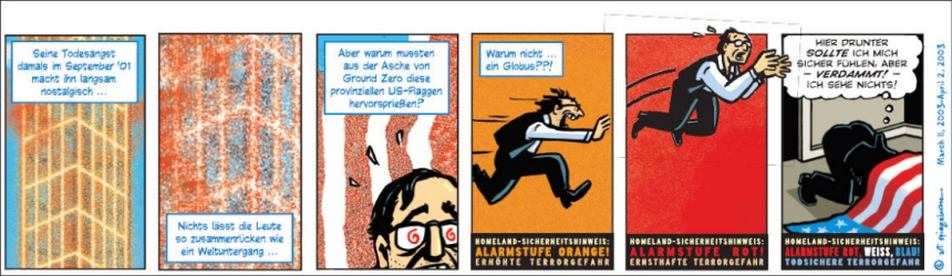 Spiegelman will bewusst keine sich wiederholende Erzählung dessen präsentieren, was monatelang sämtliche Fernsehsender und Zeitschriften aus der ganzen Welt getan haben, sondern er zeigt wie das Ereignis auf ihn und die Personen aus seinem direkten Umfeld gewirkt haben.