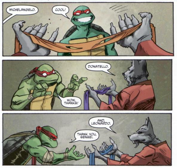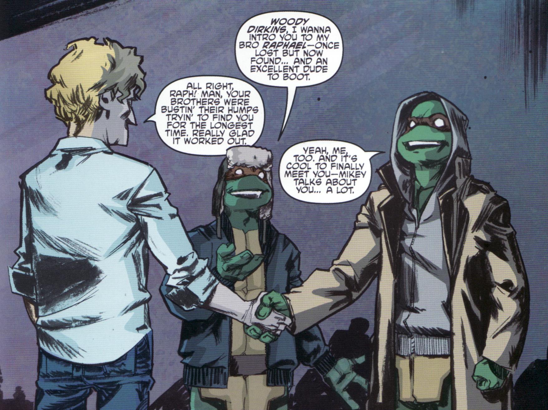 Auch die Turtles haben kurz zuvor etwas Neues erfahren. Denn Splinter offenbart ihnen, dass sie alle 5 sich schon seit viel längerer Zeit kennen. Denn Splinter ist der wiedergeborene Hamato Yoshi und die vier Turtles sind die Reinkarnationen der damals durch seinen Erzfeind ermordeten Söhne. Eine schicksalhafte Fügung hat eben diese fünf Seelen im modernen New York wieder vereint …