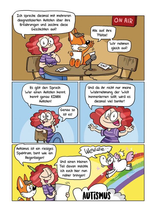 Dass Autismus ein ziemlich buntes Spektrum hat, zeigt Band 3 sehr deutlich. Hier geht es nämlich ausnahmsweise nicht um Daniela, sondern sie hat viele andere Autisten nach ihrem Werdegang und ihren Erfahrungen mit ihrem Autismus gefragt.