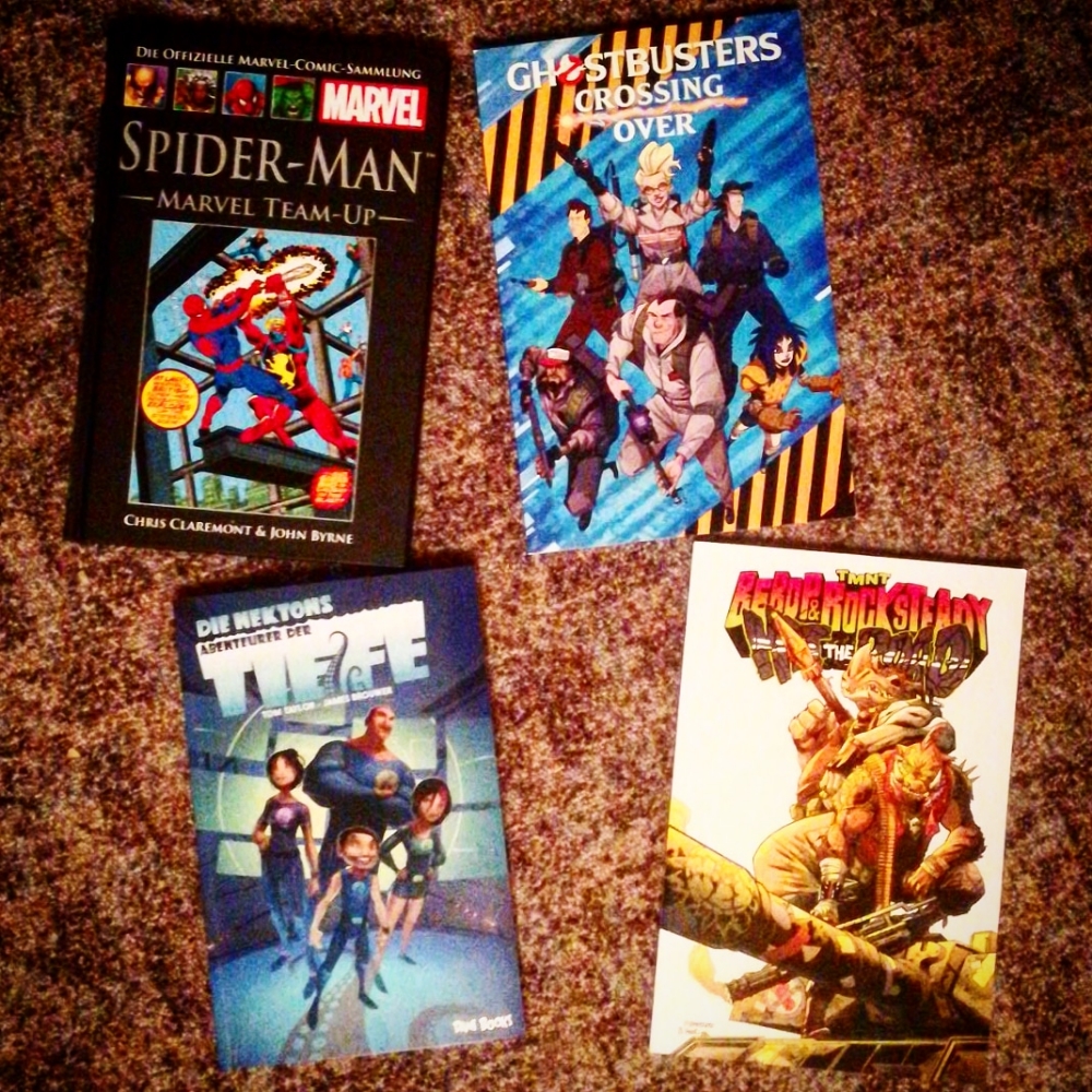 Auch die US-Comics versuche ich nach und nach abzu“arbeiten“ bis mein Stapel klein genug ist, um drüberhinwegsehen zu können. Der ist zwar deutlich kleiner, als mein deutscher Lesestapel, aber immer noch zu hoch. Das liegt neben den vielen TMNT-Paperbacks aber auch daran, dass es die Ghostbusters nicht auf Deutsch gibt und Serien wie Ghost Spider leider ebenfalls nicht. Also genug Material habe ich auf jeden Fall, deshalb …
