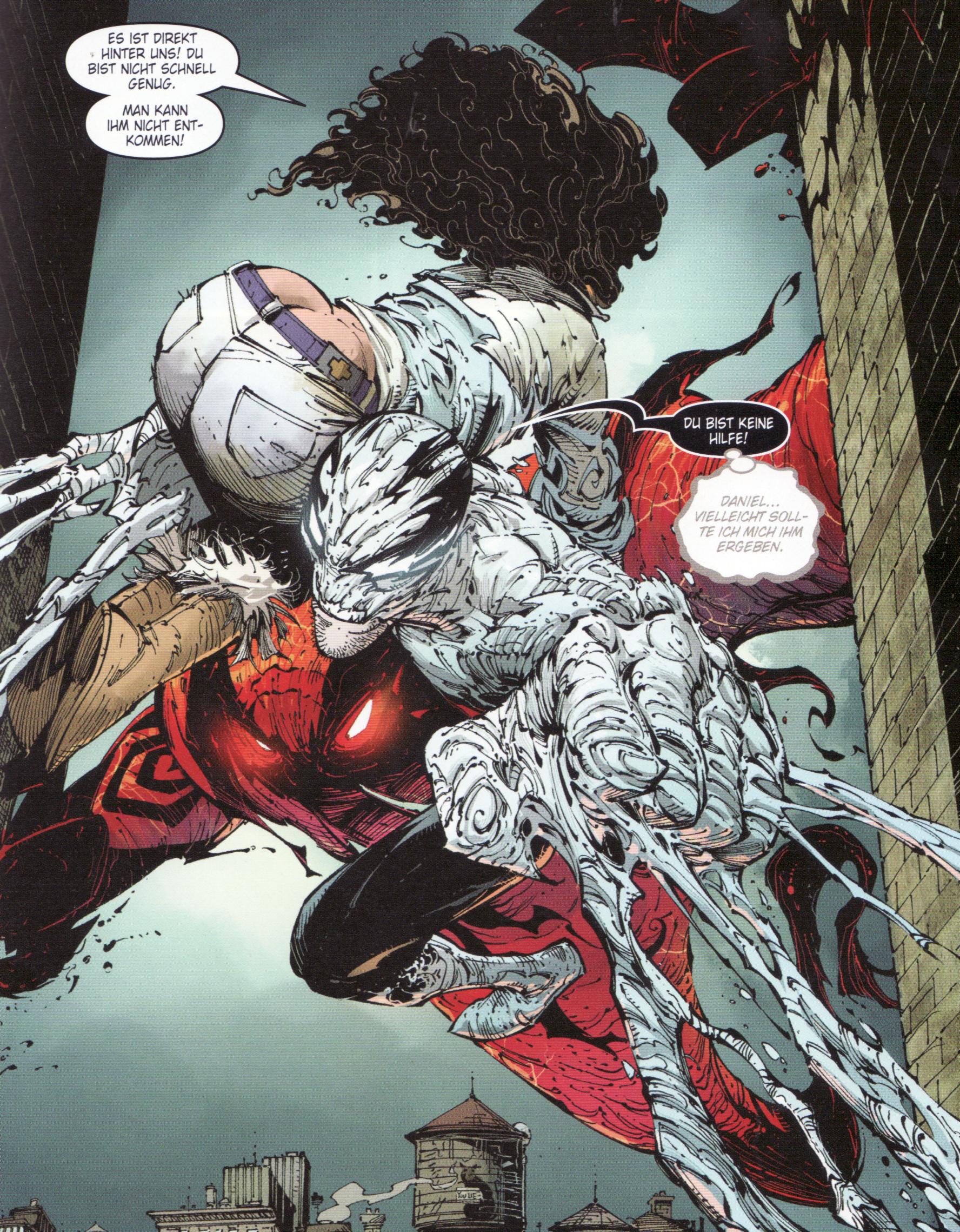 Zeichnerisch hingegen bleibt alles auf gewohnt gutem Niveau. Capullo ist einfach ein Meister seines Fachs, auch wenn noch immer sehr starke Parallelen zu Spawn und Spider-Man zu erkennen sind. Gerade einige ganz typische Spidey-Posen sind einfach zu offensichtlich.