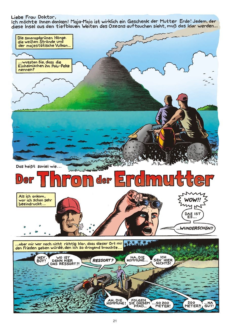 Die Story fängt sehr interessant an. Eine Insel in den tiefblauen weiten des Ozeans, das ist Moja Moja. Die Zeichnungen von The Lep wirken etwas statisch, was aber nicht weiter störend wirkt. Etwas schade ist, dass mich die Erdmutter nicht richtig überzeugen konnte, irgendwie habe ich von ihr mehr erwartet. Alles in allem gefällt mir diese Geschichte dennoch sehr gut, ist die Story an sich sehr interessant, flüssig erzählt und in sich stimmig.