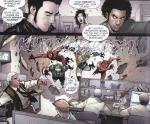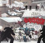 So bunt wie die Autorenriege ist auch das Zeichnerquartett. Die beiden Hauptstories werden hierbei von Stefano Caselli und Humberto Ramos getragen. Caselli hat einen sehr coolen, leicht Manga-artigen aber dennoch anatomisch korrekten dynamischen Zeichenstil. Dem ein wenig entgegen steht Ramos‘ Stil, der wesentlich energiegeladener, dafür aber anatomisch etwas problematischer ist. Da passiert es schon einmal, das die Protagonisten Posen einnehmen, die zu ernsthaften Körperschäden führen würden, dafür aber extrem stylisch aussehen. Wieder anders ist es mit den Bildern von Giuseppe Camuncoli. Seine Bilder sind von dominanten Outlines geprägt und die Details werden hauptsächlich durch die Koloration erzeugt. Minck Oosterveer, der leider viel zu früh verstarb, hat sich der Umsetzung des letzten Kapitels in dieser Ausgabe angenommen und zeigt den düstersten Stil in diesem 100 Seiten Jubiläumsheft. Die Zeichnungen wirken stellenweise fast wie aus einem Horrorcomic entnommen und unterstreichen die beklemmende Atmosphäre, welche Autor Van Lente hier erzeugt.